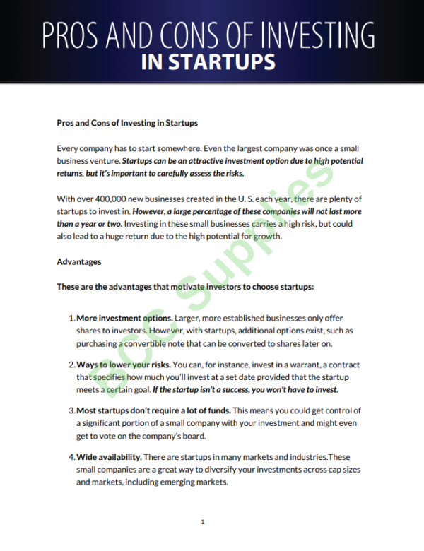 This eBook explores the landscape of investing in startups, shedding light on both the opportunities and challenges that come with this high-risk, high-reward investment strategy. It provides insights into various factors that investors should consider before committing their capital, helping them make informed decisions. With a focus on risk management and strategic investment choices, this guide serves as a valuable resource for those looking to navigate the startup ecosystem effectively.