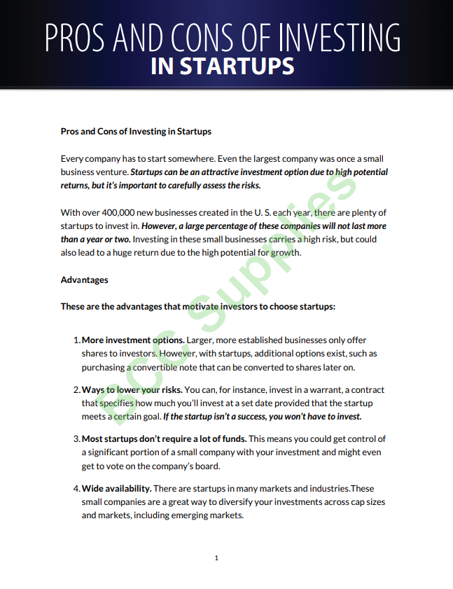 Pros And Cons Of Investing In Startups