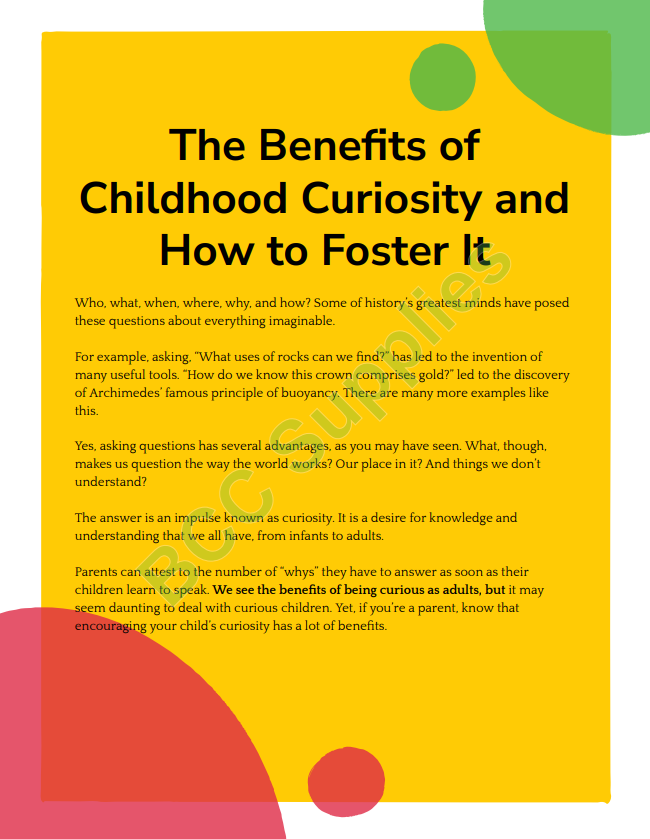 This eBook explores the natural curiosity of children and its role in shaping their cognitive and emotional development. It discusses how fostering curiosity can enhance a child’s ability to think critically, explore new ideas, and engage with the world around them. The book provides insights into how parents and caregivers can create an environment that nurtures a child’s inquisitive nature, promoting lifelong learning and problem-solving skills. Through practical suggestions, it highlights the significance of encouraging questions and exploration while maintaining a balanced approach to guidance and safety.
